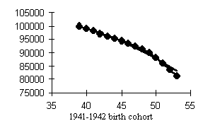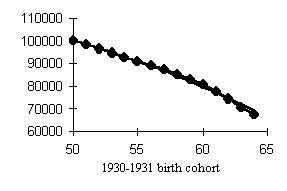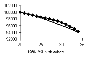 Therefore, passing from an age distribution to a cohort distribution requires the use of some approximation procedures, which cannot transform ideally one summary actual number of the deceased in each age into two unknown numbers of the deceased belonging to two neighboring birth cohorts. The problem is even more complicated in the case of sharp year-to-year changes in living conditions and correspondingly sharp fluctuations in numbers of the births and deaths in response to these changes. Any approximation, however sophisticated, is bound to lead to some evening out of the effect of disparities in mortality between successive cohorts.