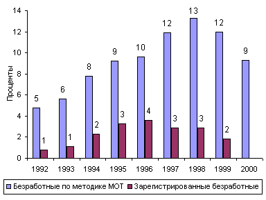труда) и зарегистрированная безработица. Россия, 1992-2000