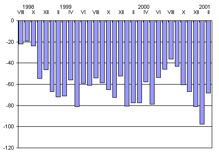 За первые два месяца 2001 года оно уменьшилось на 163,9