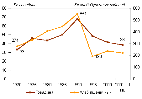 уровня 1970 - начала 1980-х годов (рис. 2). В I квартале 2001 года