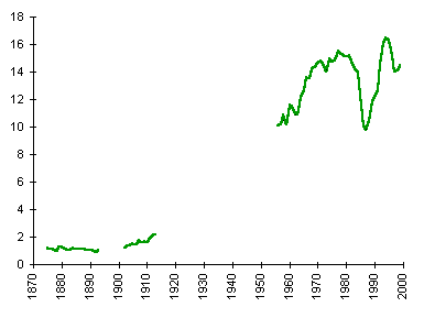принципиально не менялась, составляя в мирное время 6-8% . В США