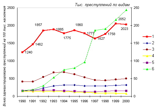 Особенно следует отметить неуклонно быстрый рост числа преступлений,
