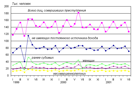 преступников колебался - до середины 90-х годов росла доля лиц 30