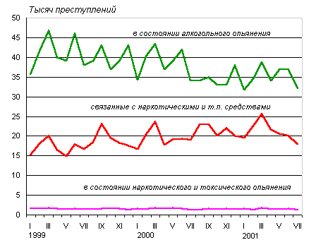 и токсического опьянения, также снижается - в январе-июле 2001 года
