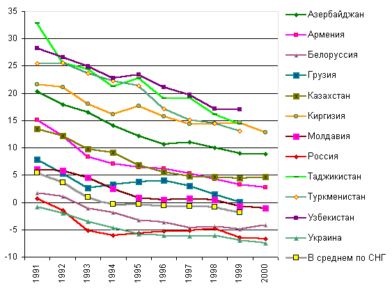 С 1994 года естественный прирост населения в целом по СНГ имеет