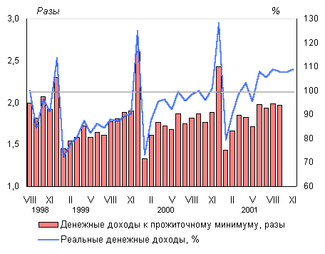 больше, чем в ноябре 2000 года. Денежные доходы населения росли