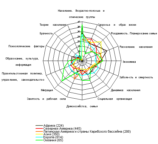 и исследований по континентам (рис. 4 и 5). Специализация на теме