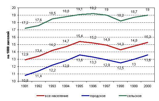 населения, более старого в сельской местности. Но и возрастные коэффициенты