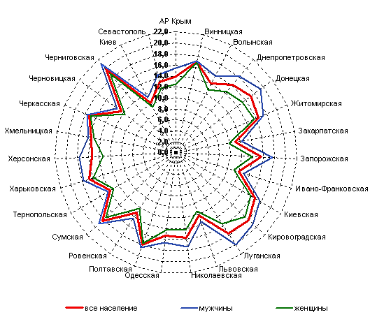 смертностью - в последние годы на Украине, как и в России, она последовательно