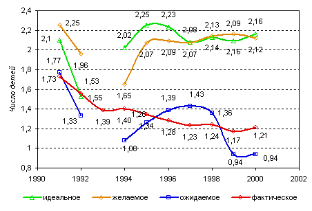 году, пик падения "желаемого" числа детей пришелся на 1994 год. При