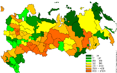 ВИЧ-инфекции по регионам России на 1 июля 2002 года