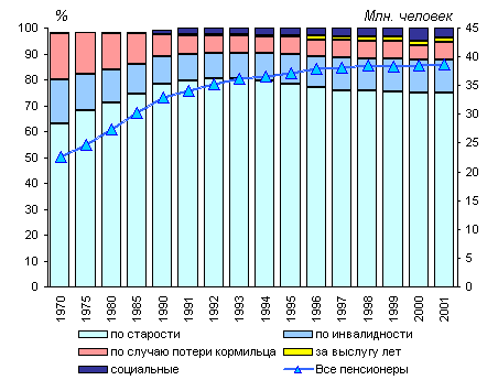 за 1992-2001 годы) отмечается быстрый рост пенсионеров, вышедших