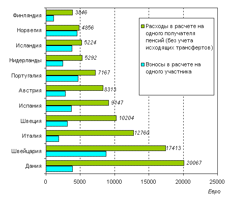 фондах, кроме Финляндии и Дании. Общее число получателей пенсий