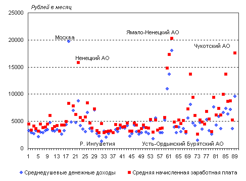уровнем денежных доходов, газодобывающие регионы - высокой заработной