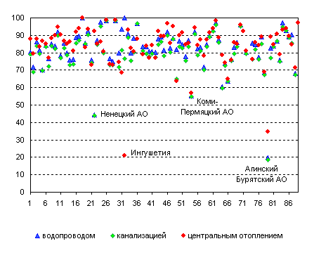 уровень оборудования водопроводом и канализацией - 95% и выше -