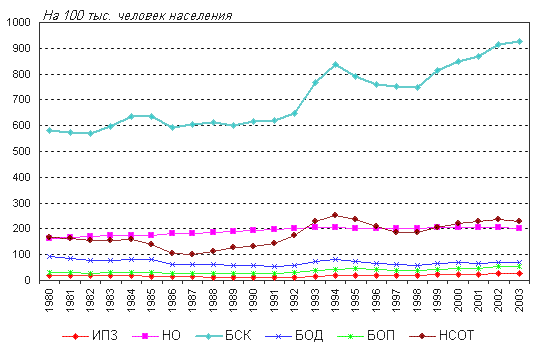 смерти, 1980-2003 годы, на 100 тысяч человек