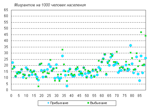 (менее чем 10 выбывших на 1000 человек). Интенсивность въезда в