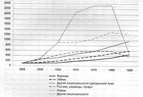 независимости темпы прироста численности киргизов были выше, чем