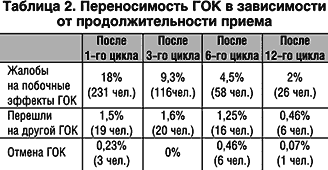 3 месяца побочные эффекты ГОК встречаются реже в 1,5 раза, а частота