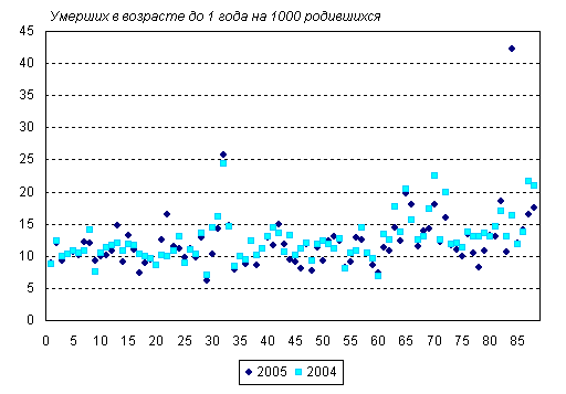 Российской Федерации, 2005 и 2004 годы, умерших в возрасте до 1