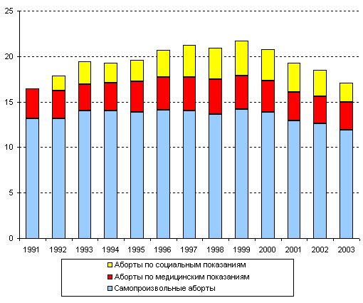 до 9,8-10,2% в 2002-2003 годах. Общее число абортов по медицинским