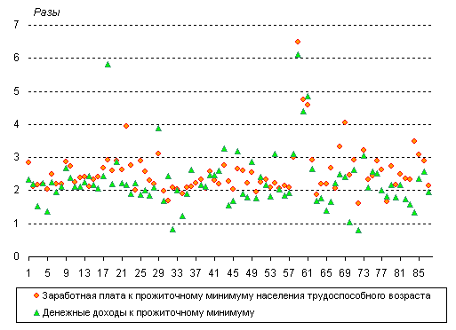 платы с прожиточным минимумом трудоспособного населения по 88 регионам-субъектам