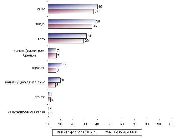 постоянство. Чаще всего они пьют пиво (37%) и водку (36%). 29% опрошенных,
