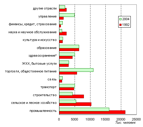 в 2004 году). В то же время увеличилась доля занятых в торговле