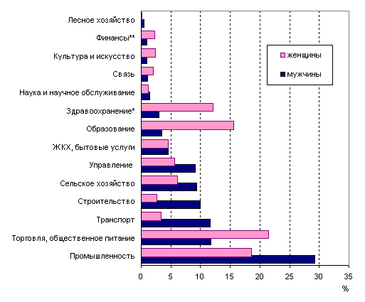 и женщин (рис. 6). Если большая часть мужчин занята в промышленности