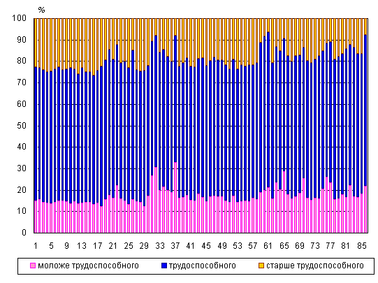 населения моложе трудоспособного возраста, напротив, превышала долю