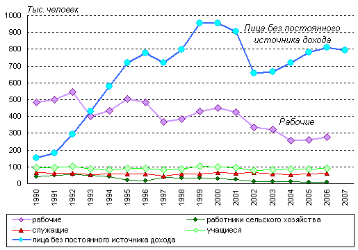 стабильно росло число лиц, не имеющих постоянного источника дохода