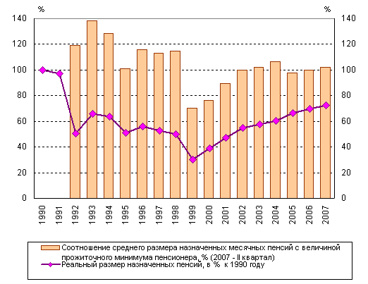 назначенной пенсии составлял лишь 72% от уровня 1990 года и лишь
