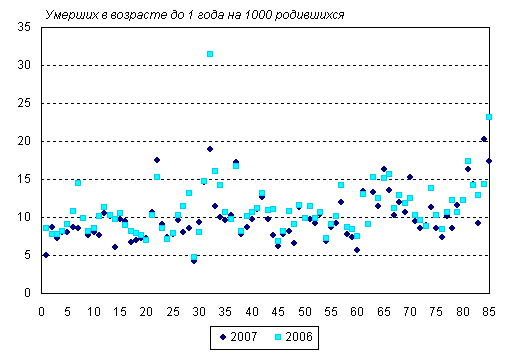 Российской Федерации, 2007 и 2006 годы, умерших в возрасте до 1
