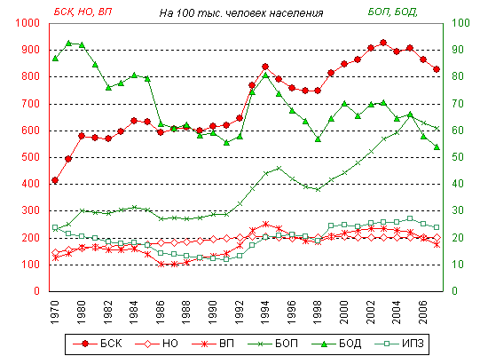 1970, 1975, 1980-2007 годы, на 100 тысяч человек населения