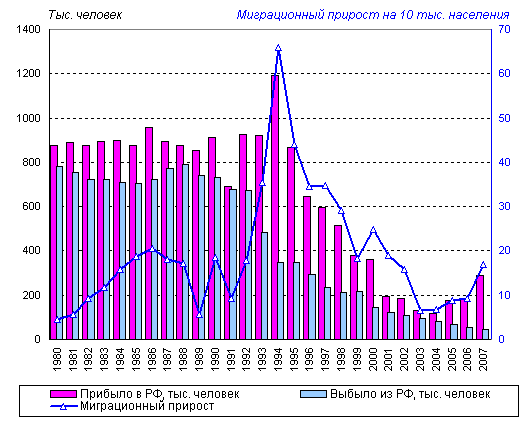 миграционный прирост был в середине 1990-х годов (845,7 тысячи человек,