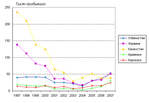 В 2007 году в качестве прибывших в Российскую Федерацию