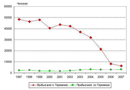 из России. В 2007 году чистая эмиграция в Германию составила -3322
