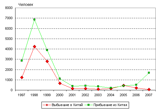 из Китая и выехавших в обратном направлении, в 2007 году наблюдался