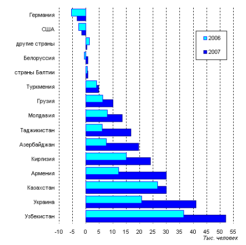 В 2007 году больше всего мигрантов из России выбыло на Украину (10,5