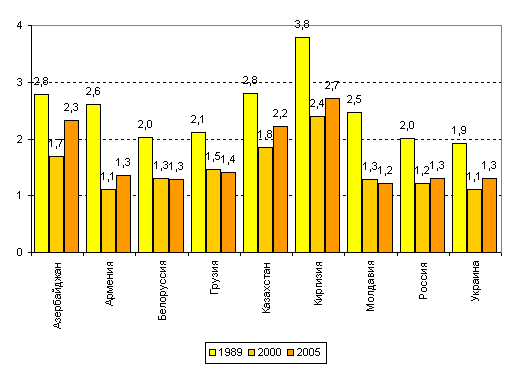 составляли 1,7 раза (от 164 в России до 272 в Киргизии). В группе