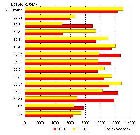 что хорошо видно на возрастной пирамиде, отображающей возрастную