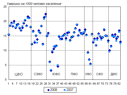 федерации, а общий коэффициент смертности - в 51 регионе. Превышение