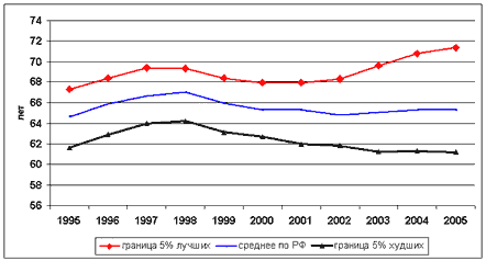 жизни для 5% лучших и 5% худших регионов