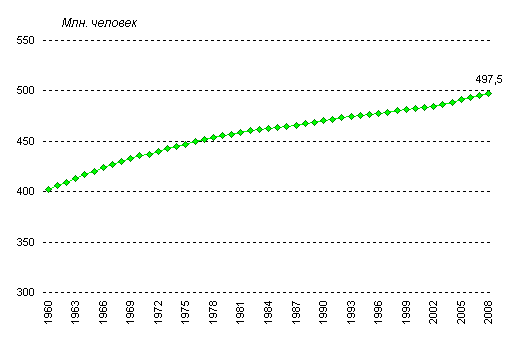 устойчиво возрастать, увеличившись с 402,6 миллиона человек в 1960