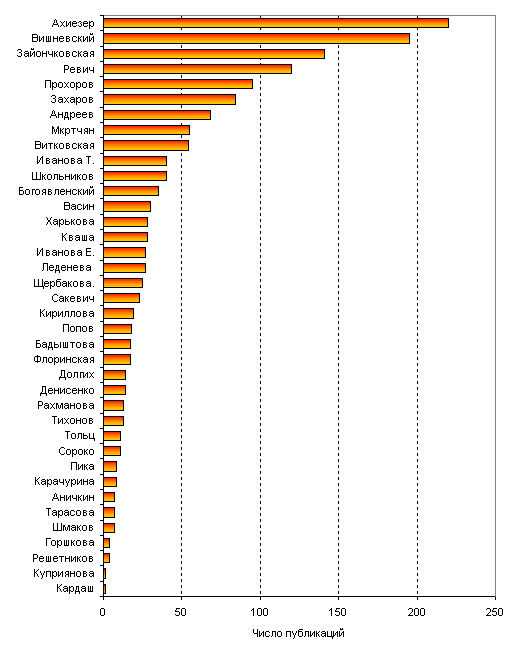 сотрудников ЦДЭЧ ИНП РАН или ИДЕМ ГУ-ВШЭ по годам за 1988-2008 годы