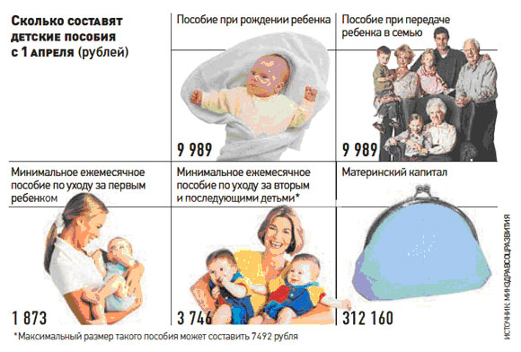 Вызван такой перерасчет увеличением прогноза инфляции. Напомним, что по той же причине кабинет министров ранее принял решение дополнительно проиндексировать страховую часть пенсии с 1 августа на уровне 7,5%. А первоапрельские прибавки в первую очередь коснутся родителей, получающих различные пособия по уходу за малышами (см. инфографику). На прибавку к этим выплатам, по словам Голиковой, из федерального бюджета будет дополнительно выделено около 3 миллиардов рублей. Вот только этого явно слишком мало.