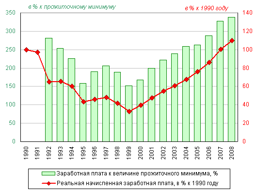 прожиточного минимума и динамика реальной начисленной заработной