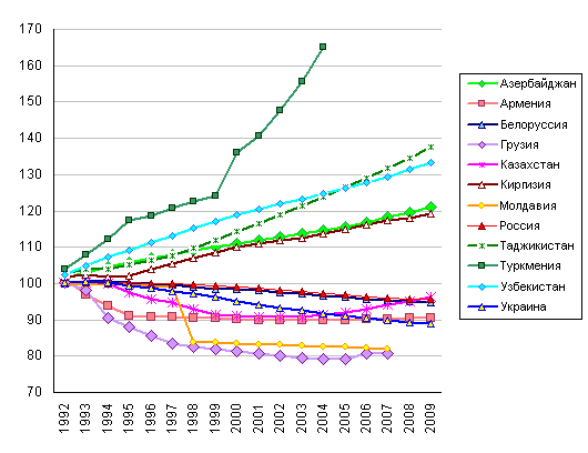 Грузия (на 24% за 1991-2006 годы), Армения и Молдавия (по -19% за