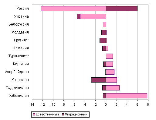 убыли населения. Прирост населения Армении, Грузии и Молдавии колеблется