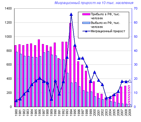 миграционный прирост был в середине 1990-х годов (845,7 тысячи человек,